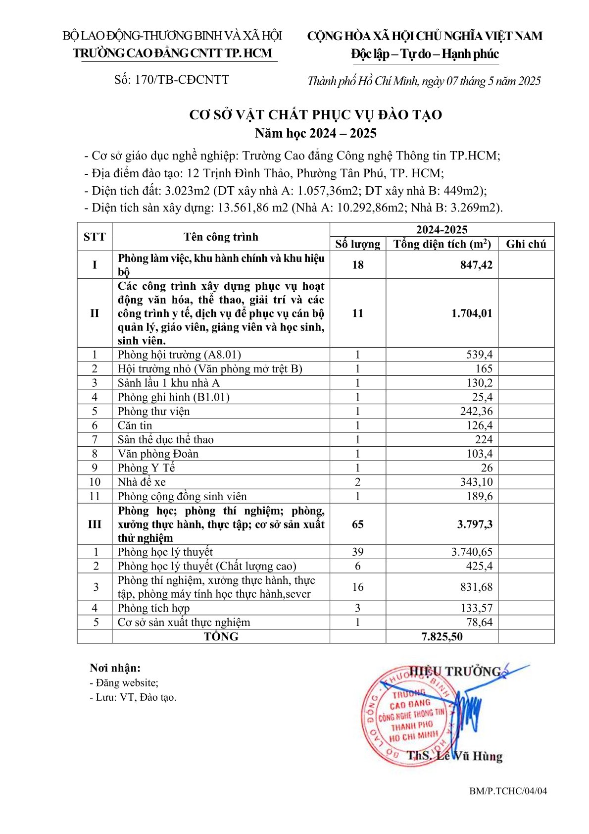 Cơ sở vật chất phục vụ đào tạo năm học 2025 - 2026
