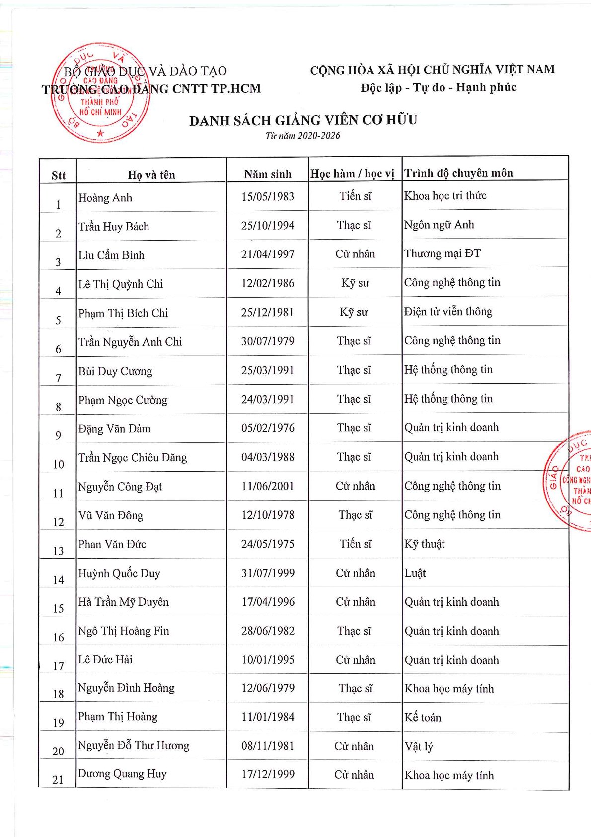 GIẢNG VIÊN TRONG HỆ THỐNG GIÁO DỤC NĂM HỌC 2025 - 2026