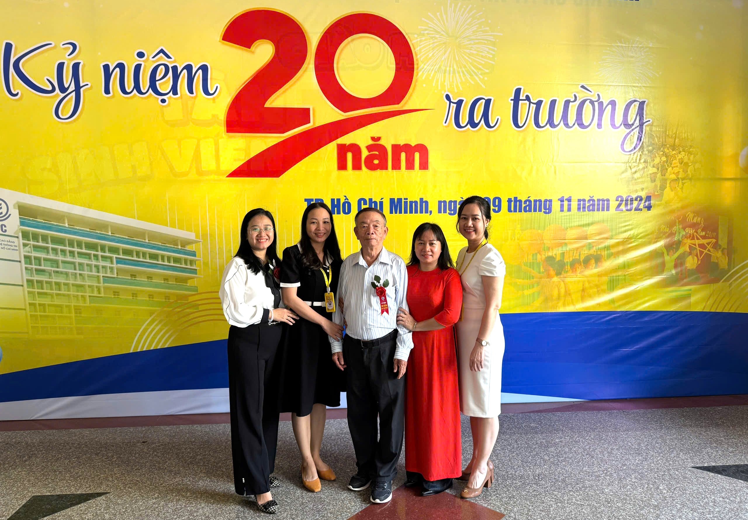 Chị Hồ Thị Thuỳ Linh bên Thầy/Cô và bạn bè sau hơn 20 năm quay lại trường ITC