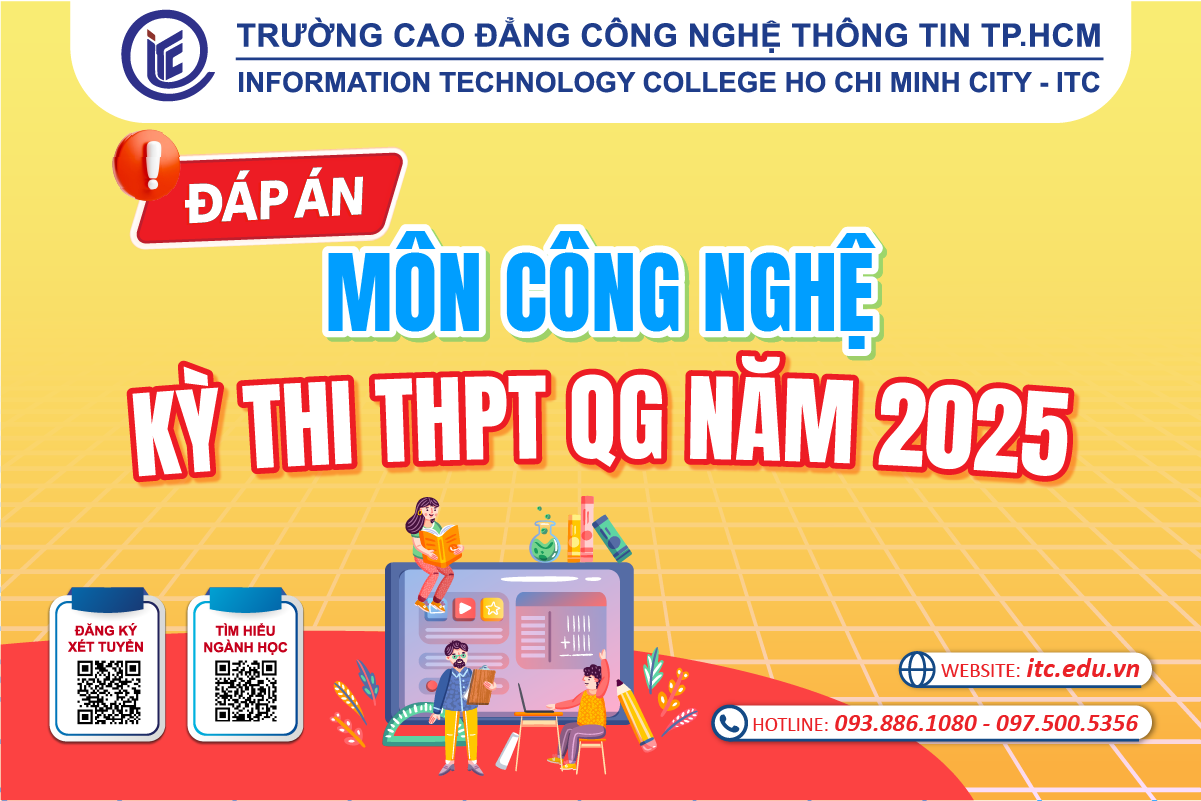 Đồng hành cùng thí sinh cả nước trong kỳ thi tốt nghiệp THPT năm 2025, Trường Cao đẳng Công nghệ Thông tin TP.HCM (ITC) chính thức khởi động chuyên mục “Đề thi chính thức và đáp án gợi ý” trên website và fanpage chính thức của trường.