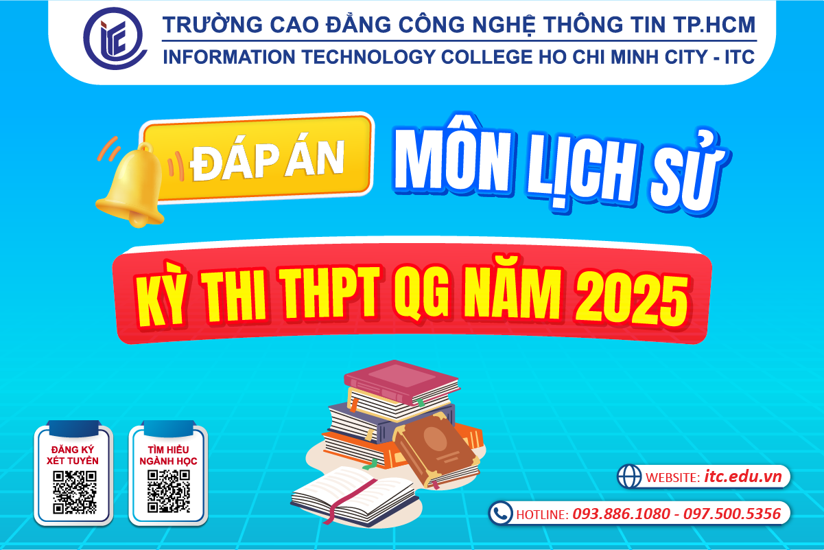 Đồng hành cùng thí sinh cả nước trong kỳ thi tốt nghiệp THPT năm 2025, Trường Cao đẳng Công nghệ Thông tin TP.HCM (ITC) chính thức khởi động chuyên mục “Đề thi chính thức và đáp án gợi ý” trên website và fanpage chính thức của trường.