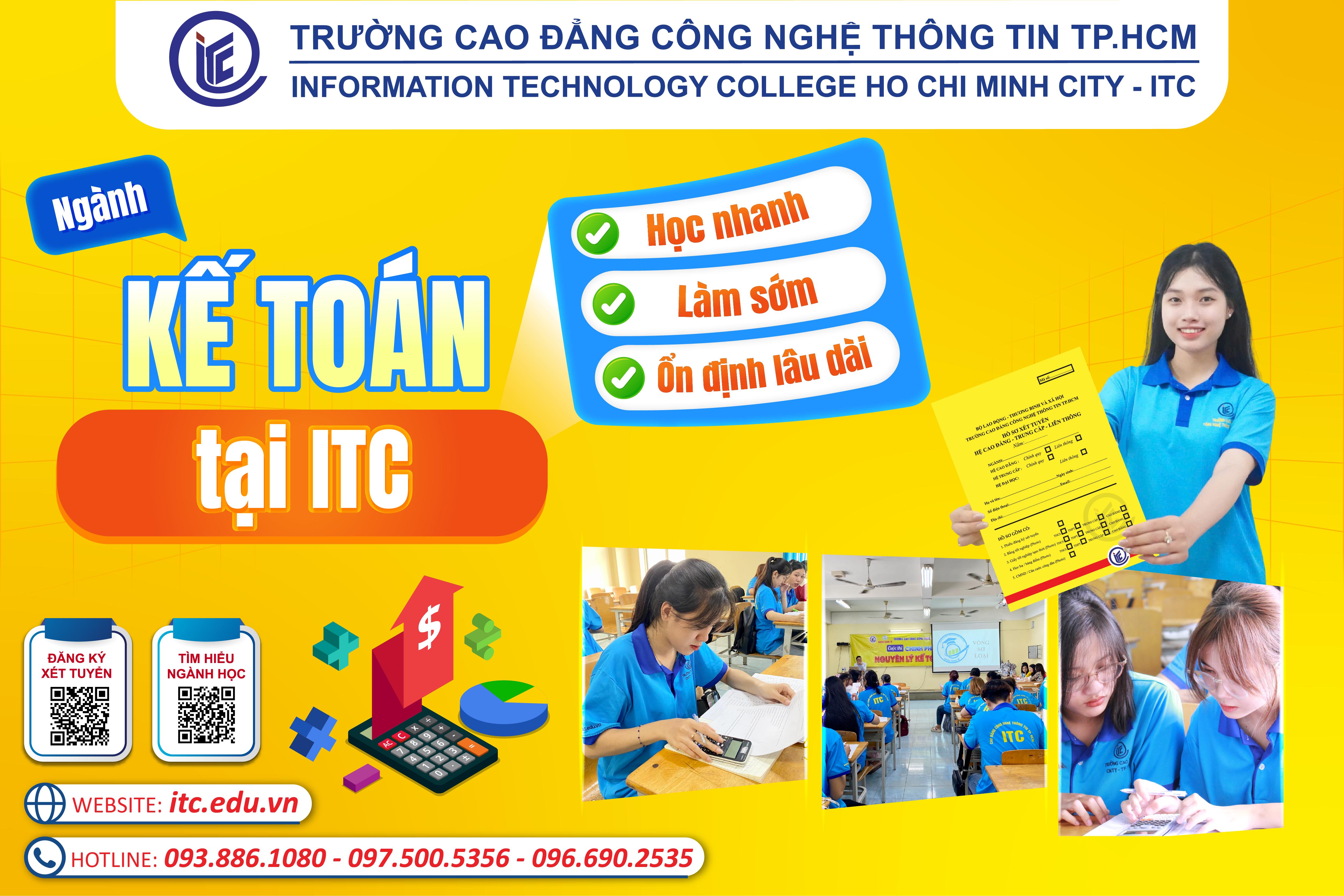 Bạn đang tìm kiếm một ngành học có tỷ lệ việc làm cao, dễ ổn định lâu dài và có thể bắt đầu công việc sớm ngay sau khi ra trường? Ngành kế toán tại Trường Cao đẳng Công nghệ Thông tin TP.HCM (ITC) chính là lựa chọn lý tưởng cho những bạn mong muốn một nghề nghiệp vững vàng, có tương lai rộng mở.