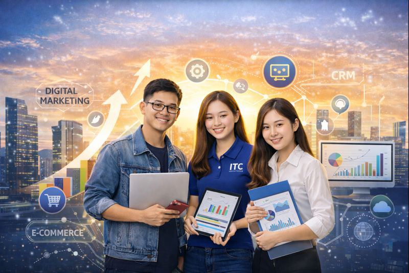 Đây là lý do khiến Quản trị Kinh doanh Số trở thành một trong những ngành học được săn đón tại nhiều cơ sở đào tạo, đặc biệt là Trường Cao đẳng Công nghệ Thông tin TP.HCM – ITC, nơi chương trình đào tạo được thiết kế linh hoạt, có định hướng thực hành và phù hợp với nhu cầu thị trường lao động.