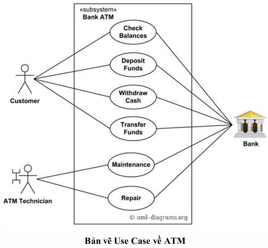 Tóm lại, chúng ta phải xây dựng hệ thống có các chức năng: Check Balance, Deposit, Withdraw, Transfer, Maintenance và Repair để đáp ứng được cho người sử dụng và các hệ thống tương tác.