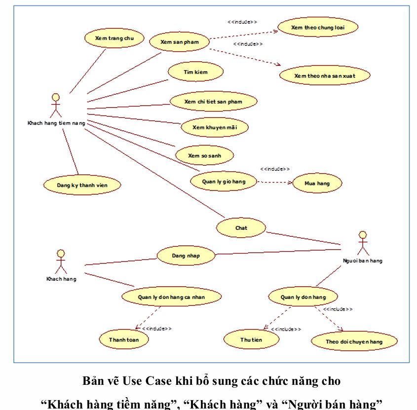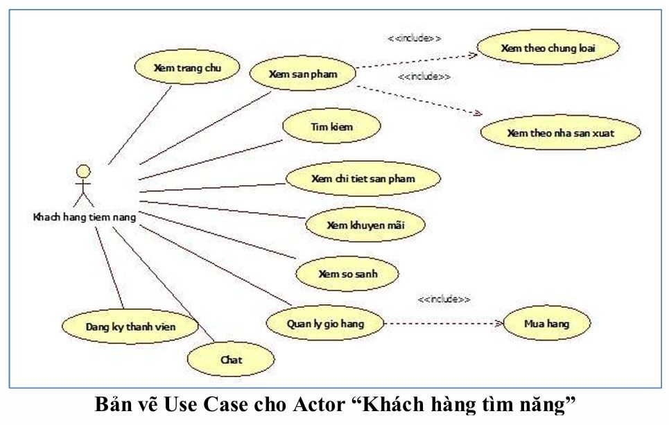 Như vậy, chúng ta đã có các Actor của hệ thống gồm: Khách hàng tiềm năng, khách hàng, Quản lý bán hang, Người bán hàng, Quản lý Kho, Quản trị hệ thống, Cổng thanh toán