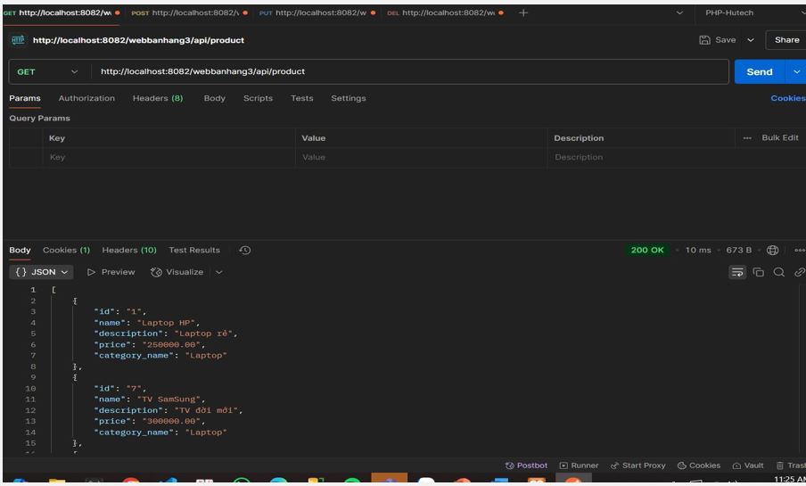 Mở phần mềm Postman để chạy các phương thức API đã tạo cho dự án