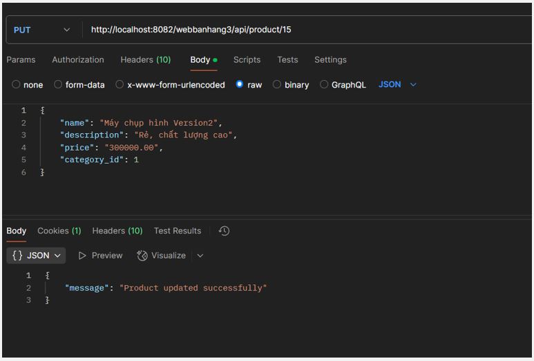 - PUT: Cập nhật thông tin cho phần tử có sẵn(UPDATE).