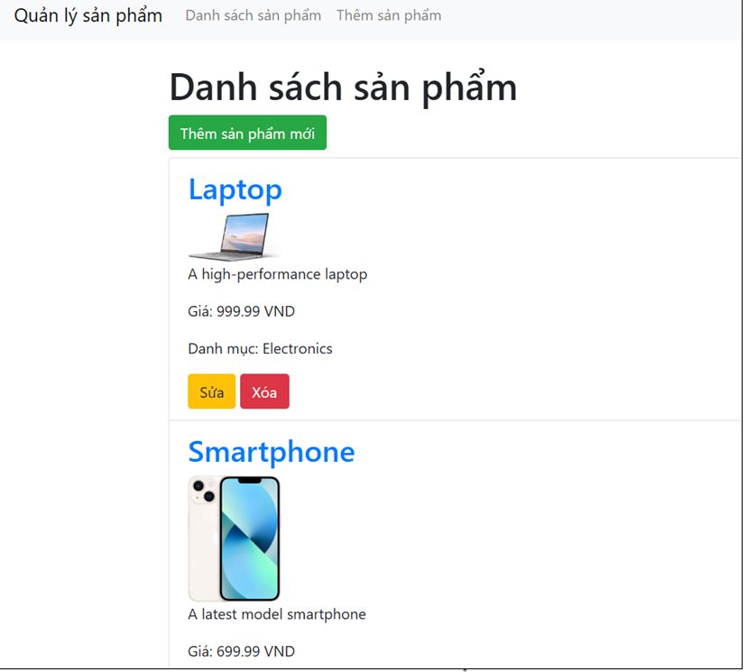 3.2 Xem danh sách sản phẩm, thêm, xóa , sửa sản phẩm.