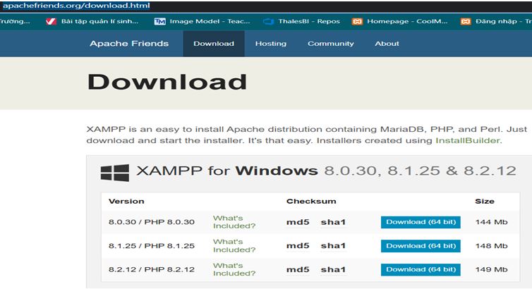 - Download XAMPP ở địa chỉ https://www.apachefriends.org/download.html