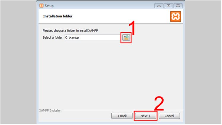 Bước 4: Chọn thư mục để cài đặt (hoặc để mặc định là C:\xampp) > Nhấn Next