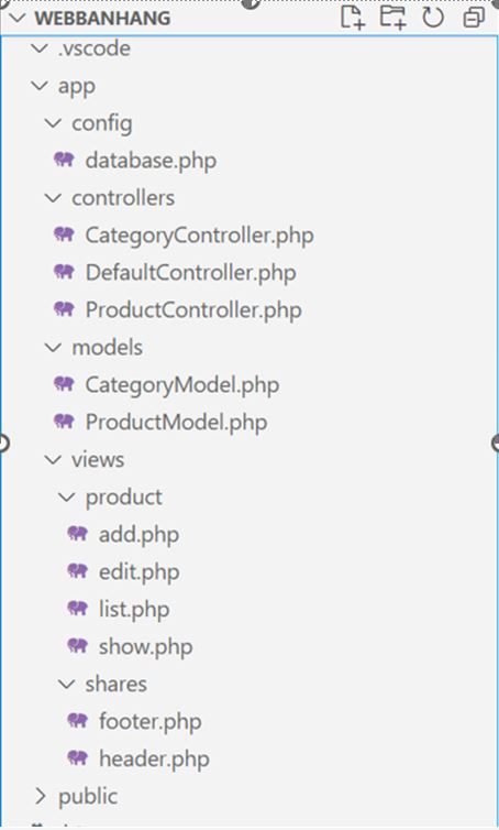 Tạo dự án mang tên ‘webbanhang’ với cấu trúc thư mục như sau: