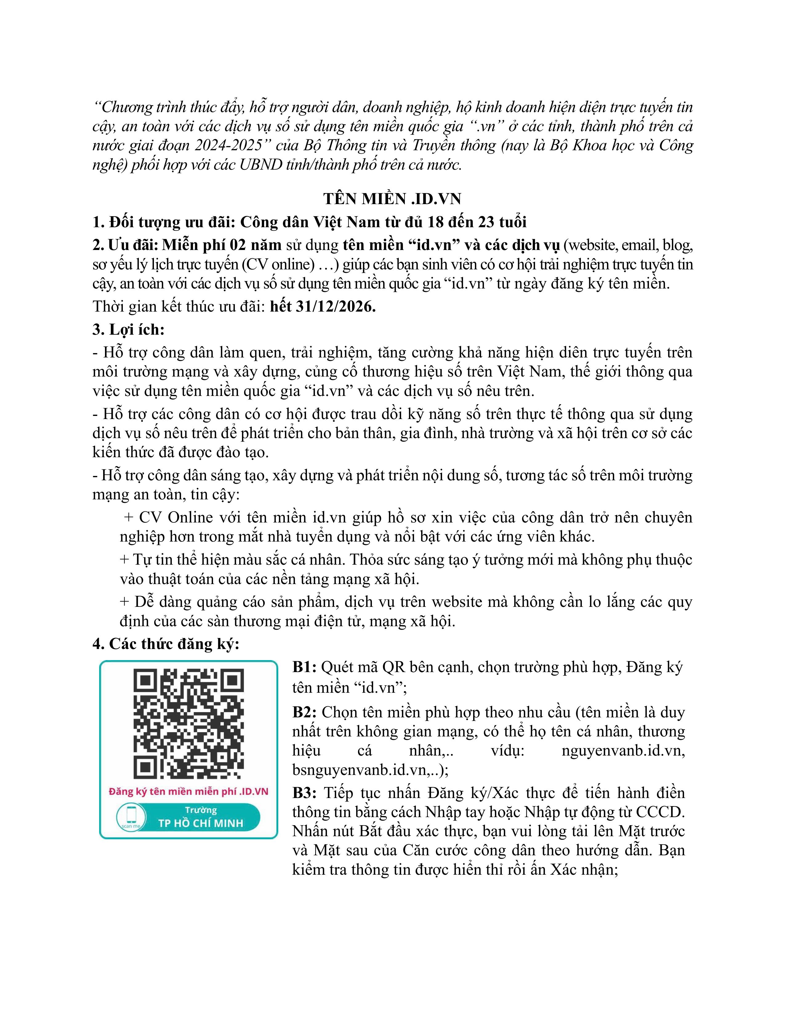 Hướng dẫn đăng ký tên miền ID.VN miễn phí cho sinh viên ITC