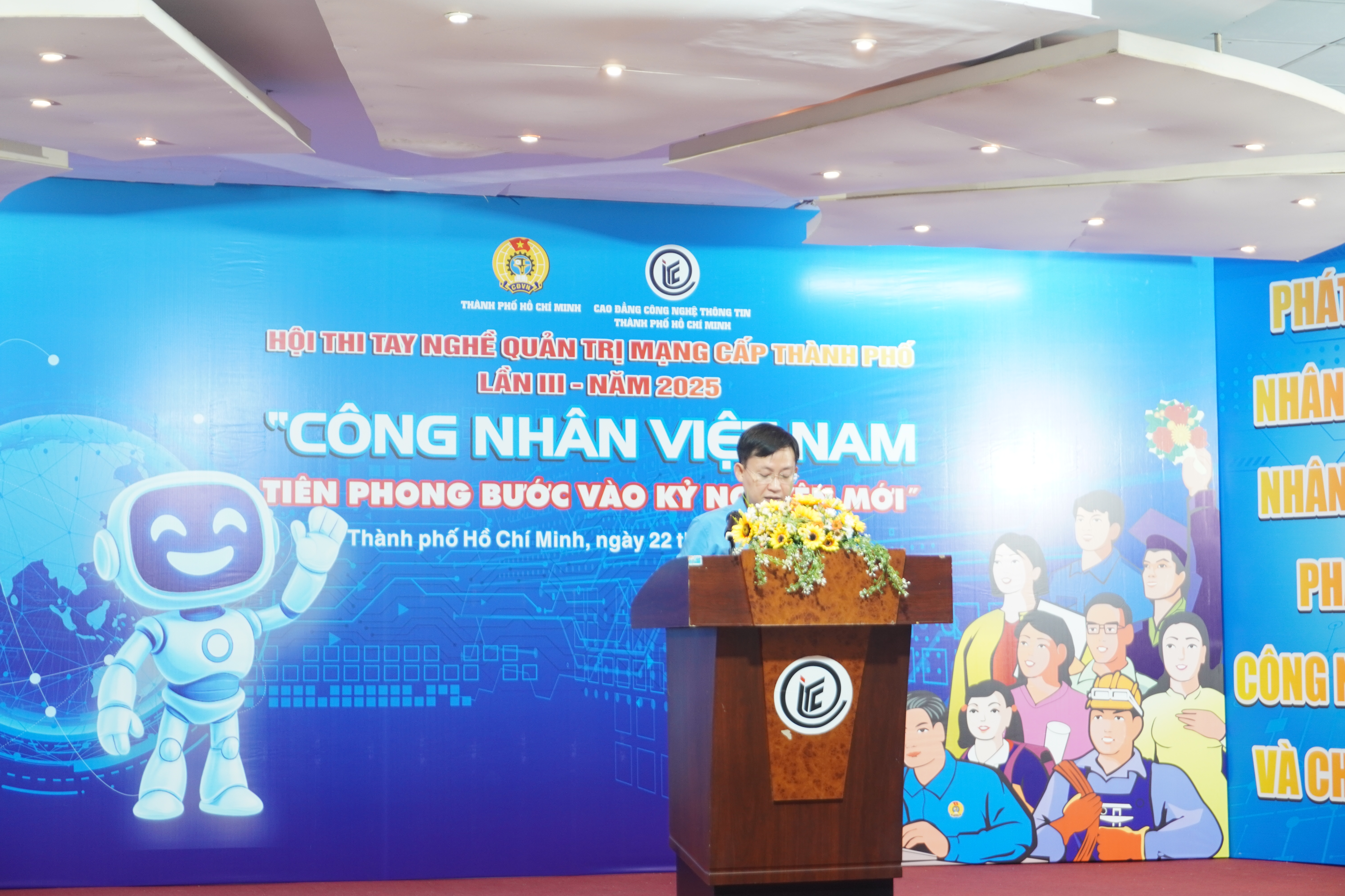 Sáng ngày 22/6/2025, tại Trường Cao đẳng Công nghệ Thông tin TP.HCM (ITC) đã chính thức diễn ra Lễ khai mạc Hội thi tay nghề Quản trị mạng TP.HCM lần III – năm 2025, với chủ đề: “Công nhân Việt Nam tiên phong bước vào kỷ nguyên mới”. Sự kiện do Liên đoàn Lao động TP.HCM phối hợp tổ chức cùng Trường ITC, thu hút sự quan tâm của đông đảo cán bộ, chuyên gia, giảng viên và đặc biệt là hơn 500 thí sinh đến từ các công đoàn cơ sở trên địa bàn thành phố.