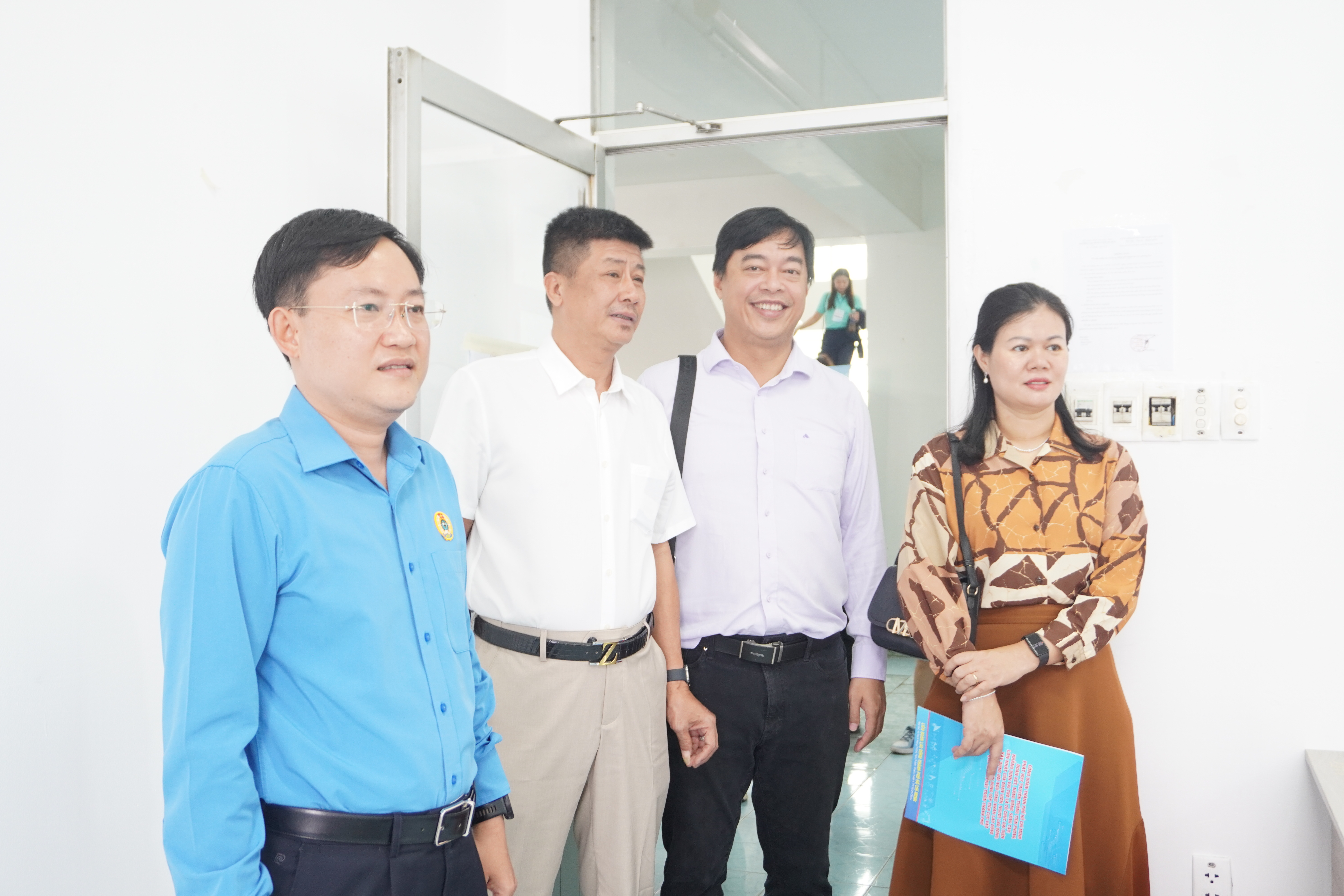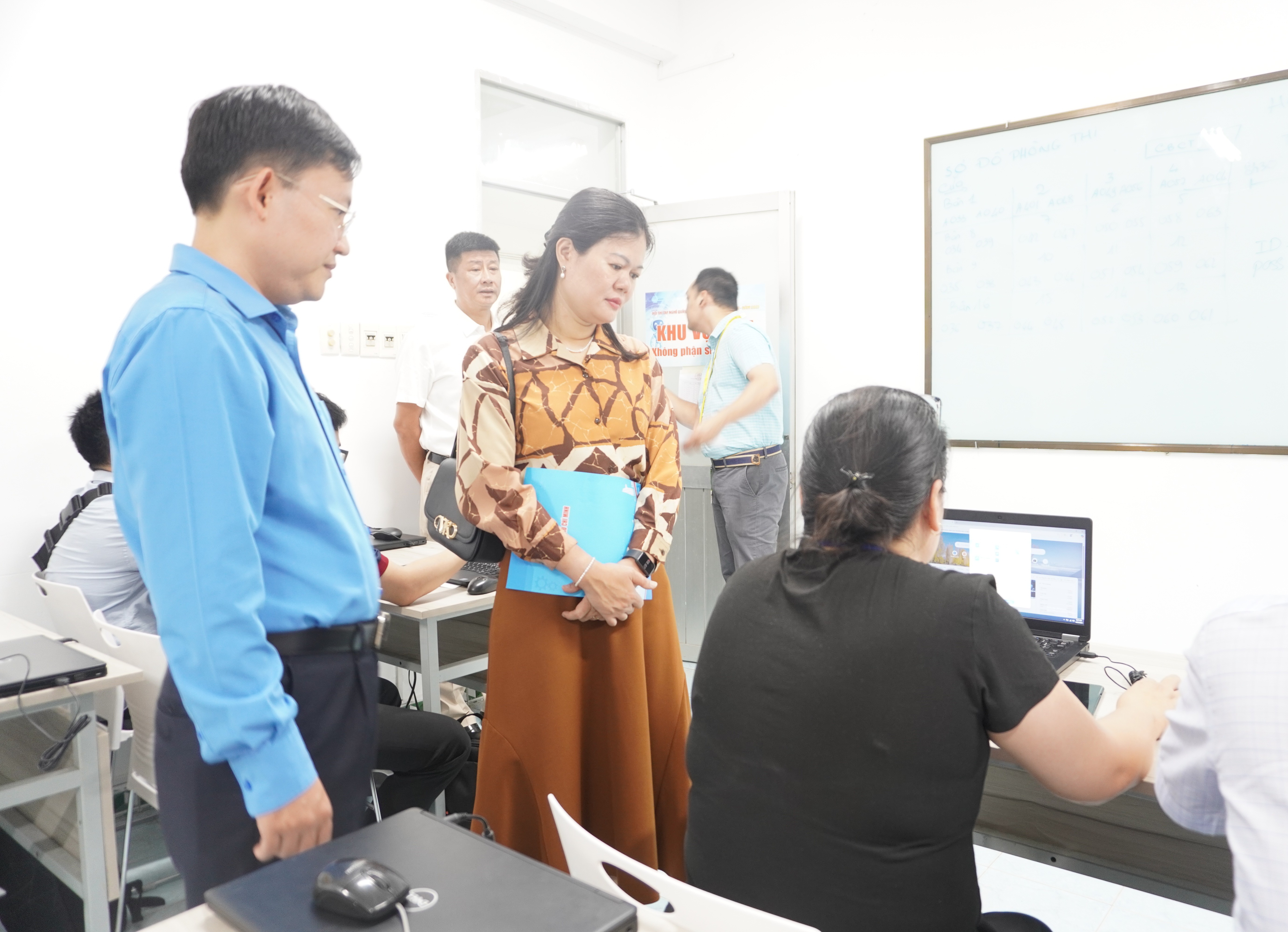Lãnh đạo Liên đoàn lao động TP.HCM và Trường ITC tham quan, kiểm tra các phòng thi