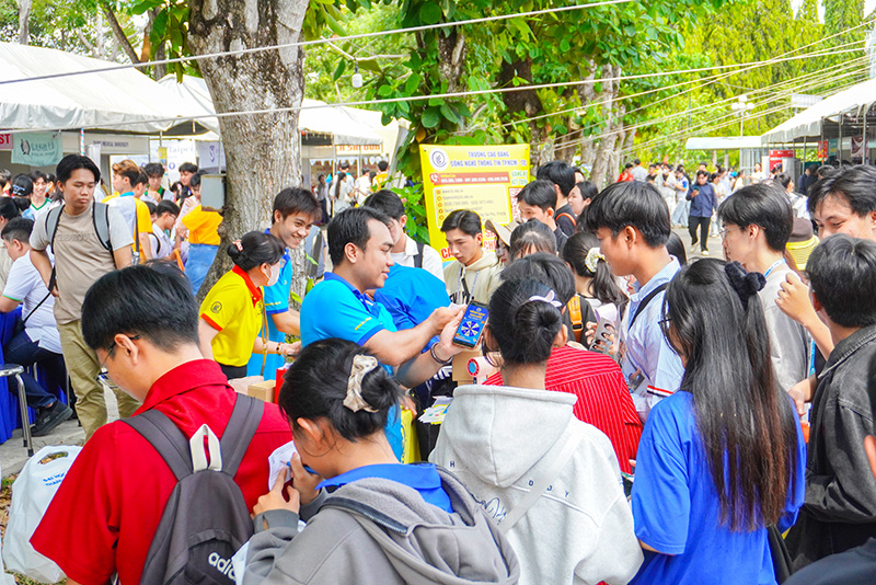 Không chỉ dừng lại ở hoạt động tư vấn, gian hàng ITC còn mang đến không gian trải nghiệm trẻ trung, năng động với khu vực check-in thu hút. Đặc biệt, hoạt động nhận quà đã tạo nên điểm nhấn nổi bật, thu hút đông đảo học sinh tham gia. Những phần quà xinh xắn được trao tận tay cùng những nụ cười rạng rỡ đã góp phần làm nên một ngày hội đáng nhớ. Hình ảnh các bạn hào hứng “rinh quà”, lưu lại khoảnh khắc tại gian hàng đã thể hiện rõ sức hút và sự gần gũi của ITC đối với học sinh.