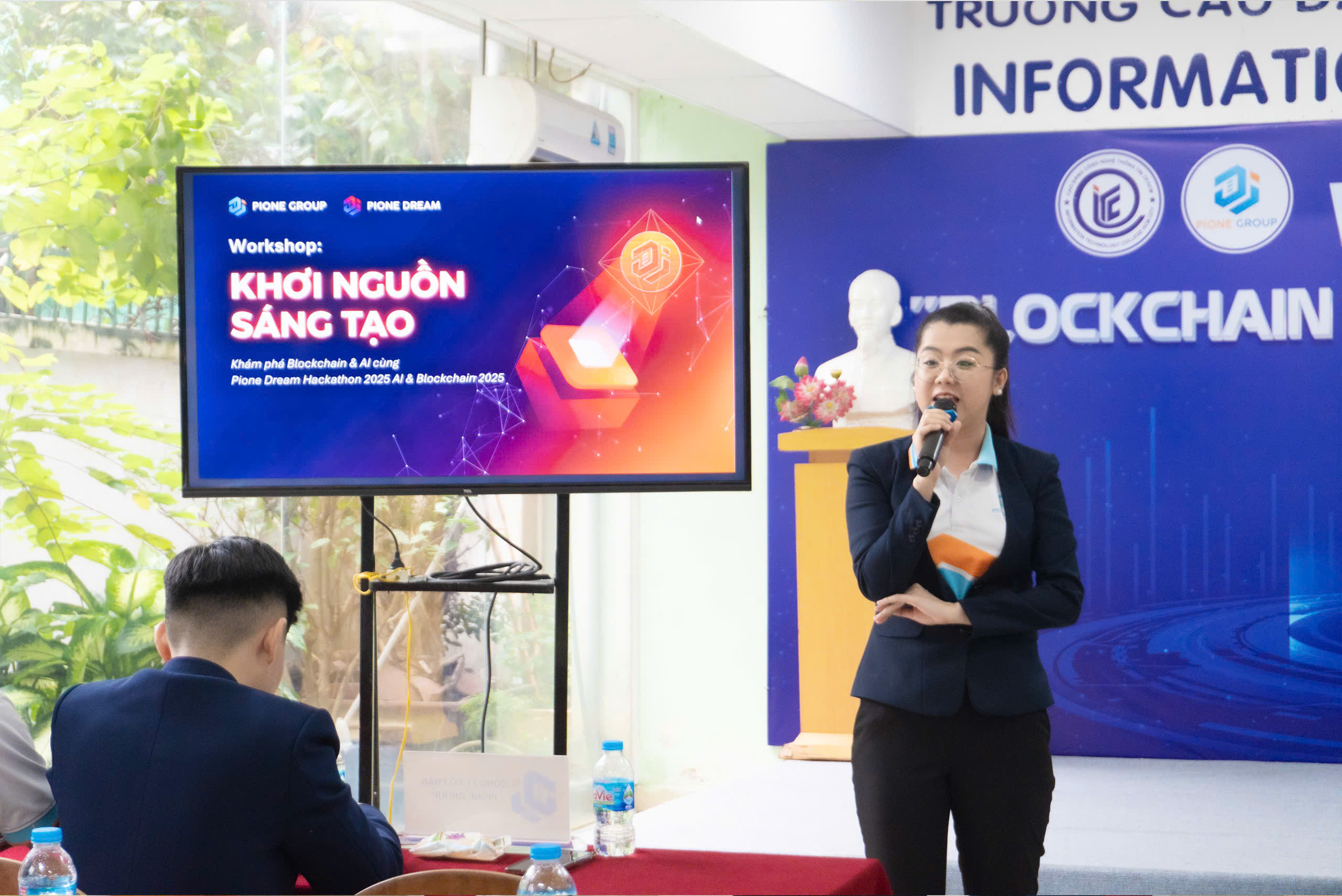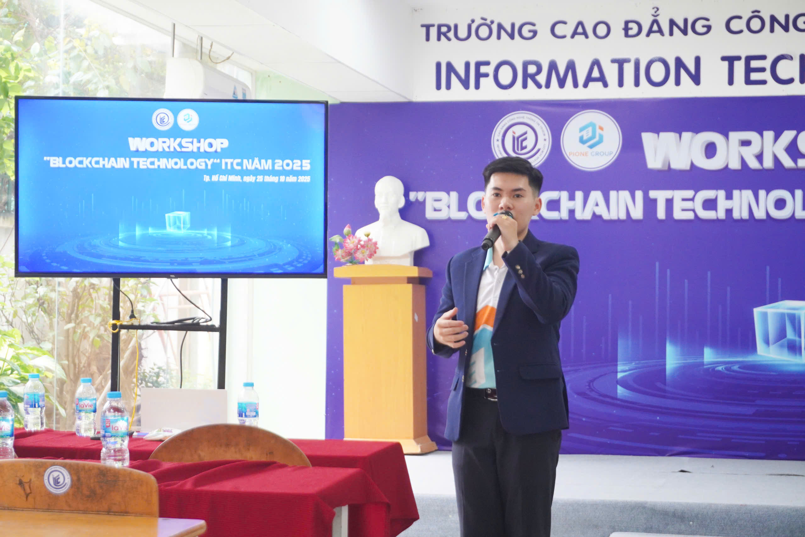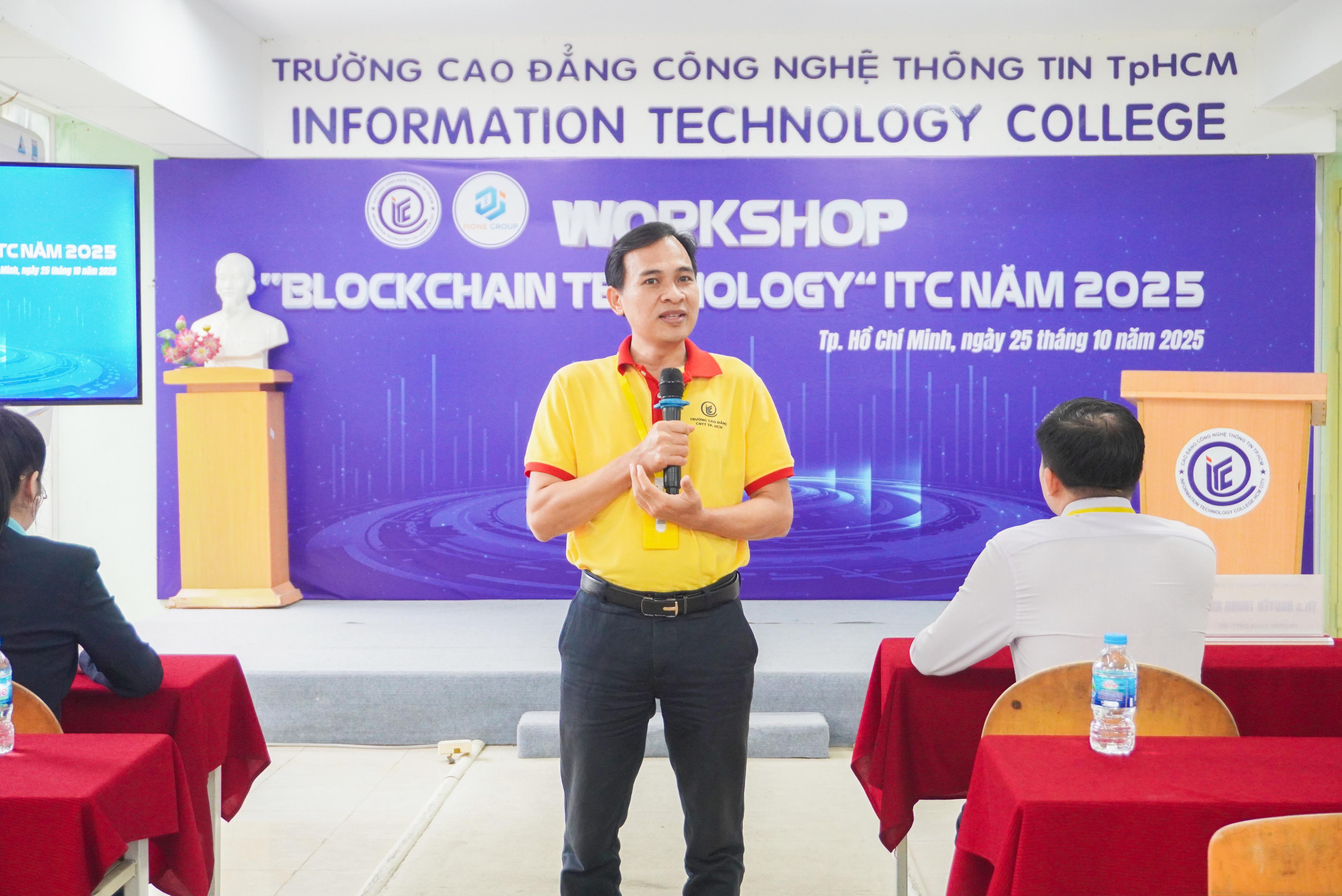 Sáng ngày 25/10/2025, tại Hội trường Trệt B – Trường Cao đẳng Công nghệ Thông tin TP.HCM (ITC) đã diễn ra Workshop “Blockchain Technology” ITC 2025 do Trung tâm Quan hệ Doanh nghiệp & Hỗ trợ Sinh viên phối hợp cùng Công ty Cổ phần Pione Group tổ chức. Sự kiện thu hút đông đảo sinh viên tham gia với tinh thần háo hức được tiếp cận một trong những công nghệ đang định hình tương lai thế giới.