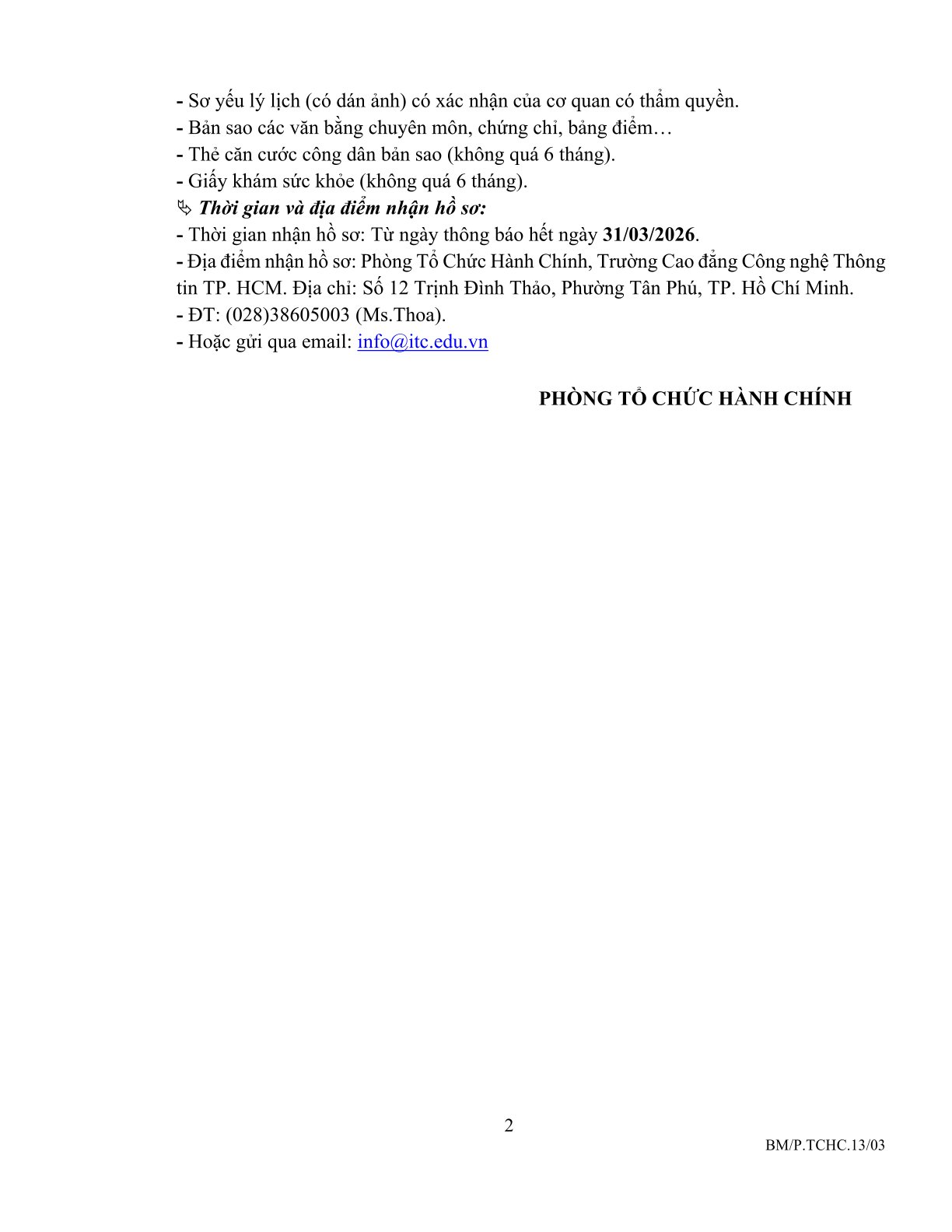 Trường ITC tuyển dụng 02 nhân sự tổ Quản trị thiết bị